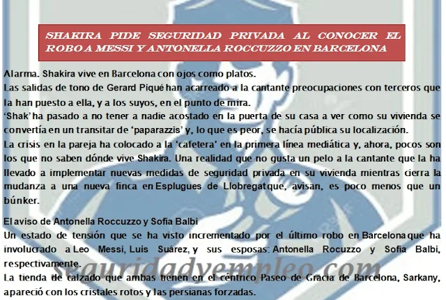 SHAKIRA QUIERE MAYOR SEGURIDAD PRIVADA PARA SU SEGURIDAD - SEGURIDAD Y EMPLEO